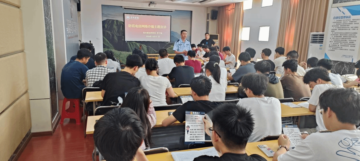 2024年6月13日,为有效遏制电信新型诈骗违法犯罪案件高发势头,切实提升广大师生的防范意识, 永利集团88304官网集团在各班级选派了44名学生骨干成员组建防诈骗宣讲团,并邀请安源公安分局东大派出所所长李丁胜在鼎新楼2200进行防诈骗专题培训班。