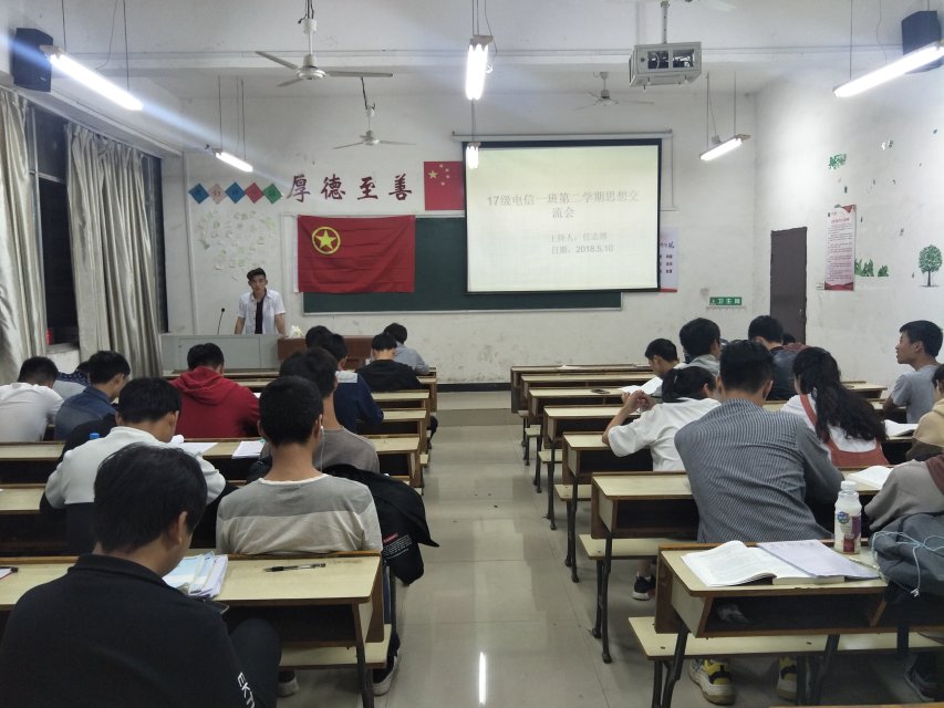 2018年5月20日20点,机电学院17电信一班在鼎新楼2316举行了一次以“快乐成长、共同分享”为主题的交流会,旨在增进同学之间的联络与情感,保证班级的工作能够顺利的开展与进行。