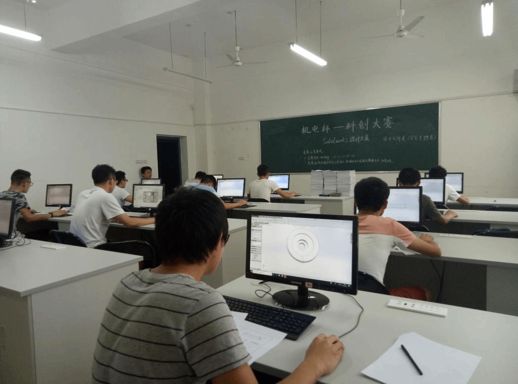 本轮比赛分为两项,第一项为solidworks制图,第二项为CAD制图。参赛同学以个人为单位,运用软件知识在规定时间内完成了比赛题目。制图大赛不仅仅要求作图的质量以及规范,同时也考察同学们的熟练程度,即作图时间。比赛考察的是同学们赛前的准备以及对solidworks、CAD软件作图的灵活运用。作图过程中难免会遇到难题和瓶颈,但同学们都一直认认真真去绘制每一个图,思考每一个细节,作图步骤,哪怕是一个很小的问题,也都会很仔细。比赛结束,选手们交卷后陆续离场,离开时仍然不忘与同行人交流比赛成果,反思自己的不足。