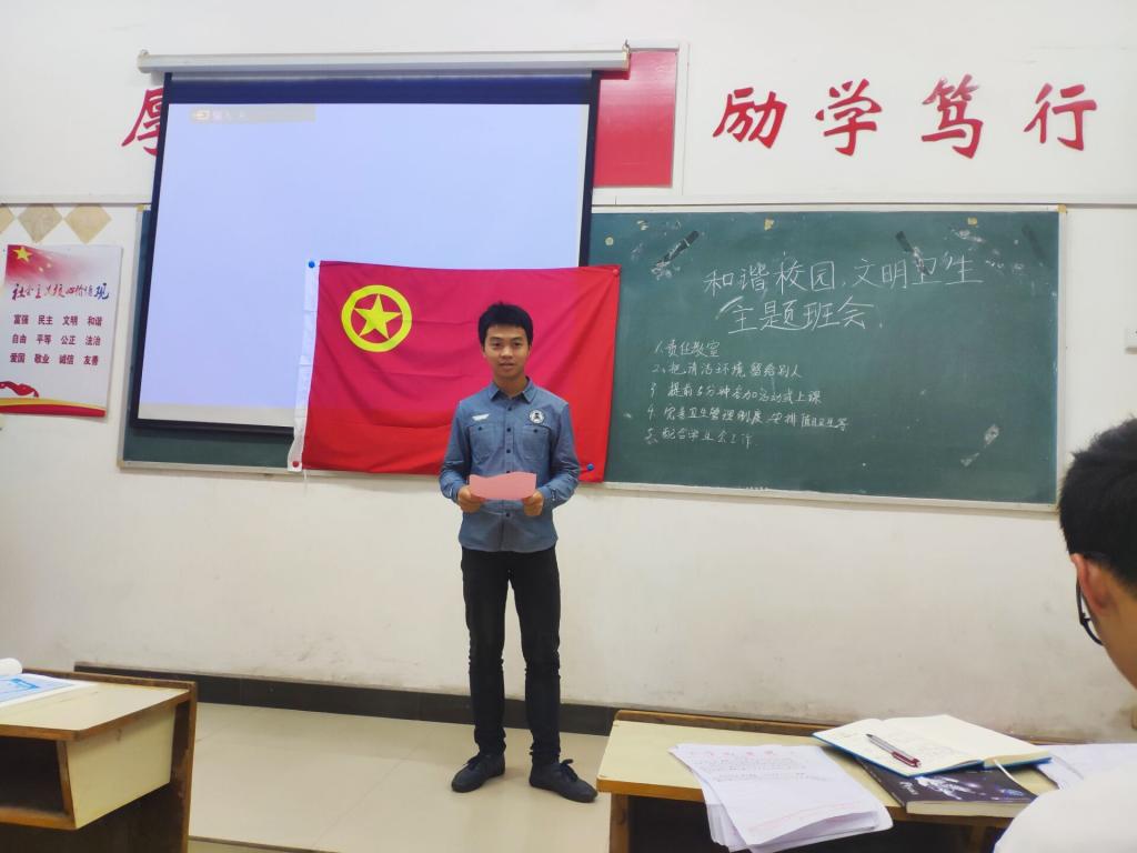 2018年10月17日下午2点整,18机设一班举行了一次以"美化环境,美化生活,美化生活"为主题的班会。这一次班会的目的是为了呼吁同学们强化环境卫生意识,养成良好的文明习惯。