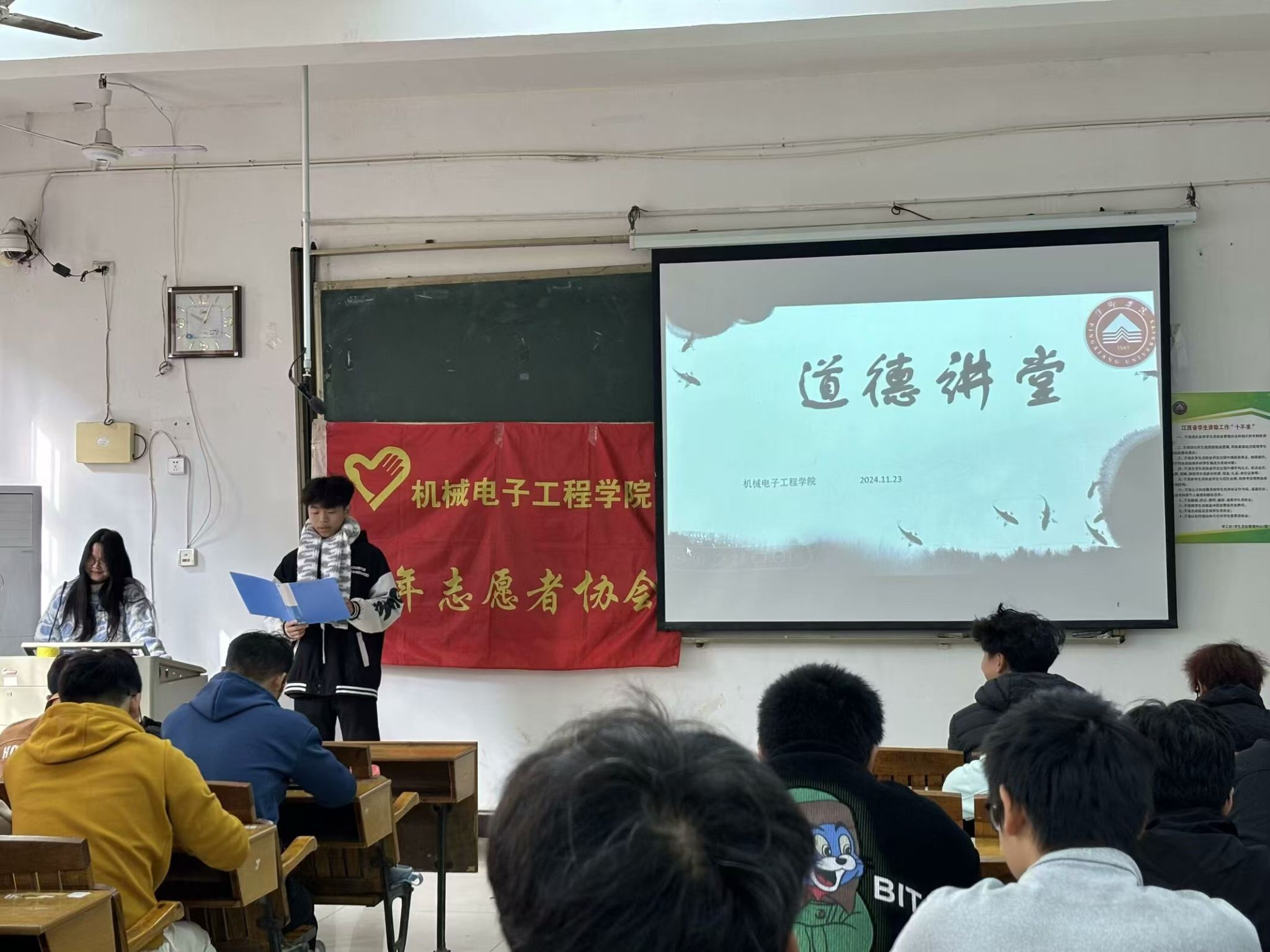 为进一步弘扬社会主义核心价值观,激发青年志愿者的社会责任感和奉献精神,2024年11月23日,永利集团88304官网集团在鼎新楼2313教室开展了以“崇德向善,爱满人间”为主题的道德讲堂活动。机电学院青协及2024级部分新生参加了本次活动。