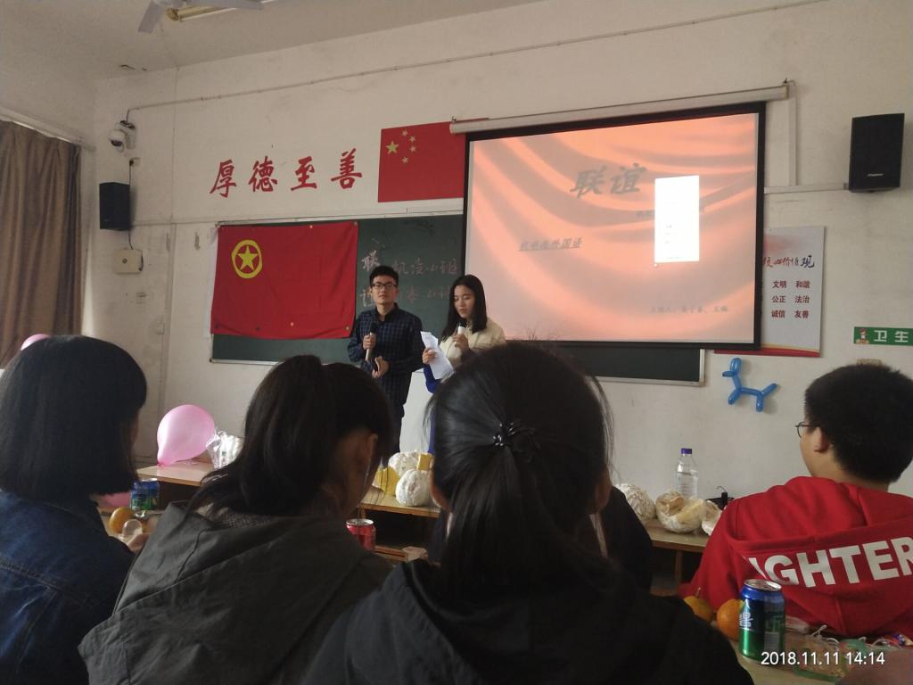 为促进学院之间、班级之间同学的交流,丰富学生的课外活动,18机设二班和18商本二班于2018年11月11日举行了一场别开生面的联谊活动。