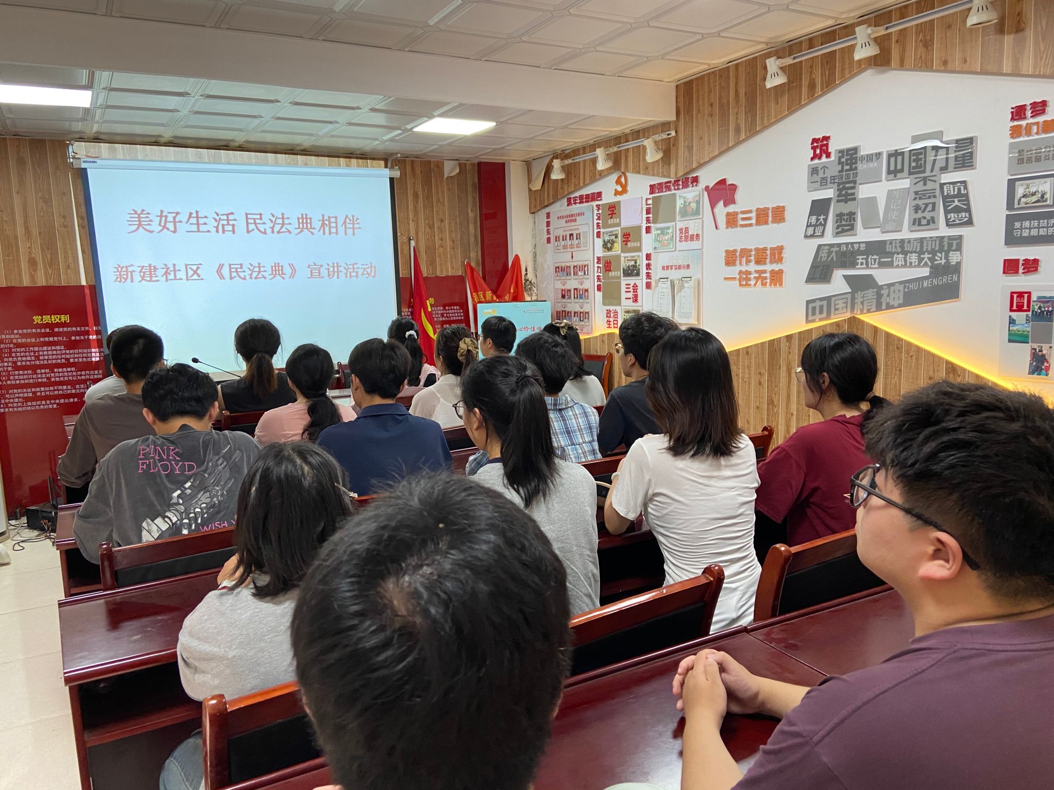 在社区工作人员的指引下,师生党员在新建社区聆听了社区“美好生活·民法典相伴”主题普法活动,社区工作人员的专题讲座聚焦青年成长需求,通过典型案例解析,从民事活动和处理民事纠纷、解除劳动合同经济补偿、违法解除劳动合同赔偿金、劳动者维权的误区、劳动者的主要权利、知识产权法的法理结构等方面做了精彩纷呈、深入浅出的讲解。讲座中涉及的法律知识对在校学生和即将走上工作岗位的毕业生都有重要的指导价值。