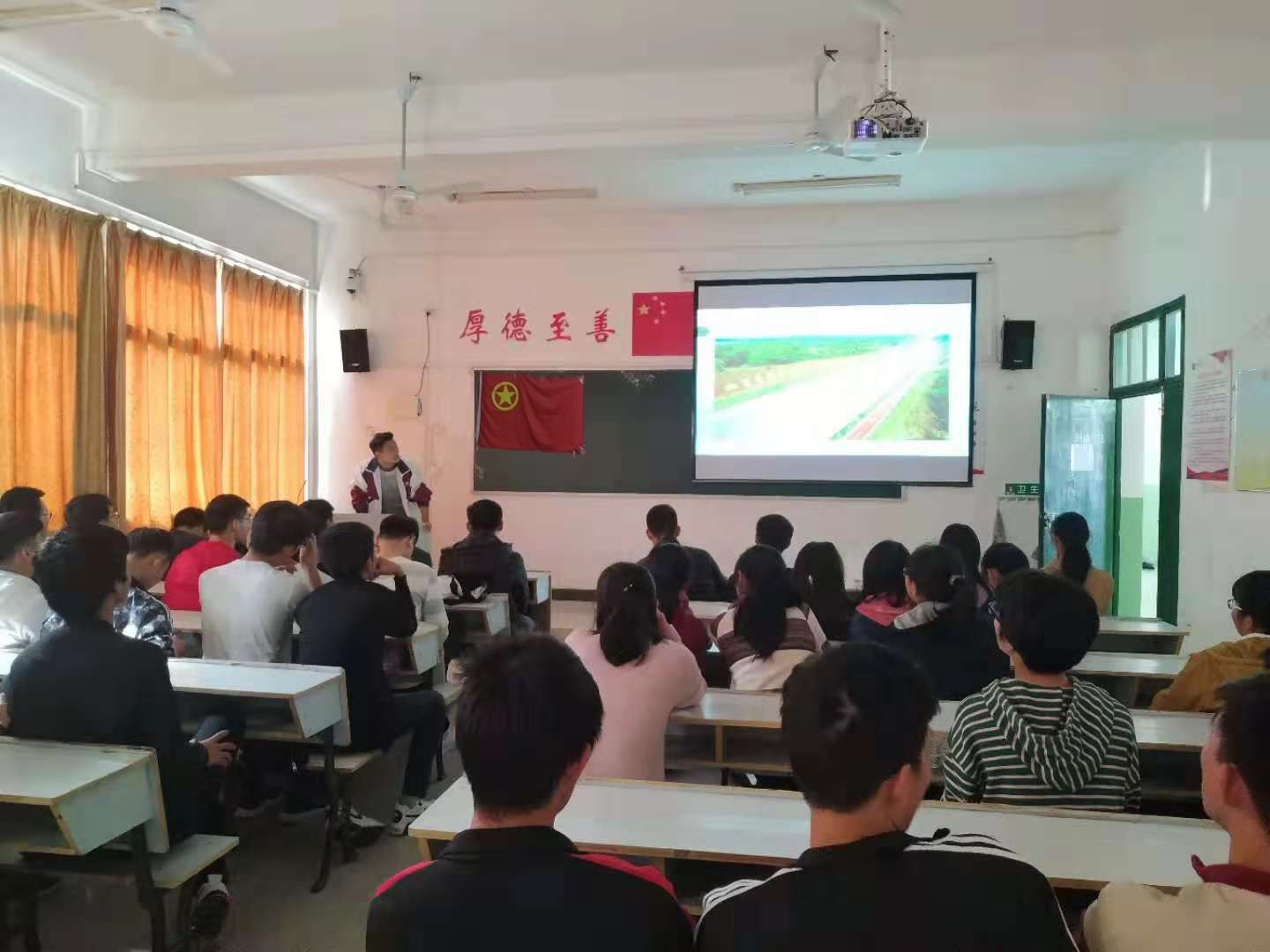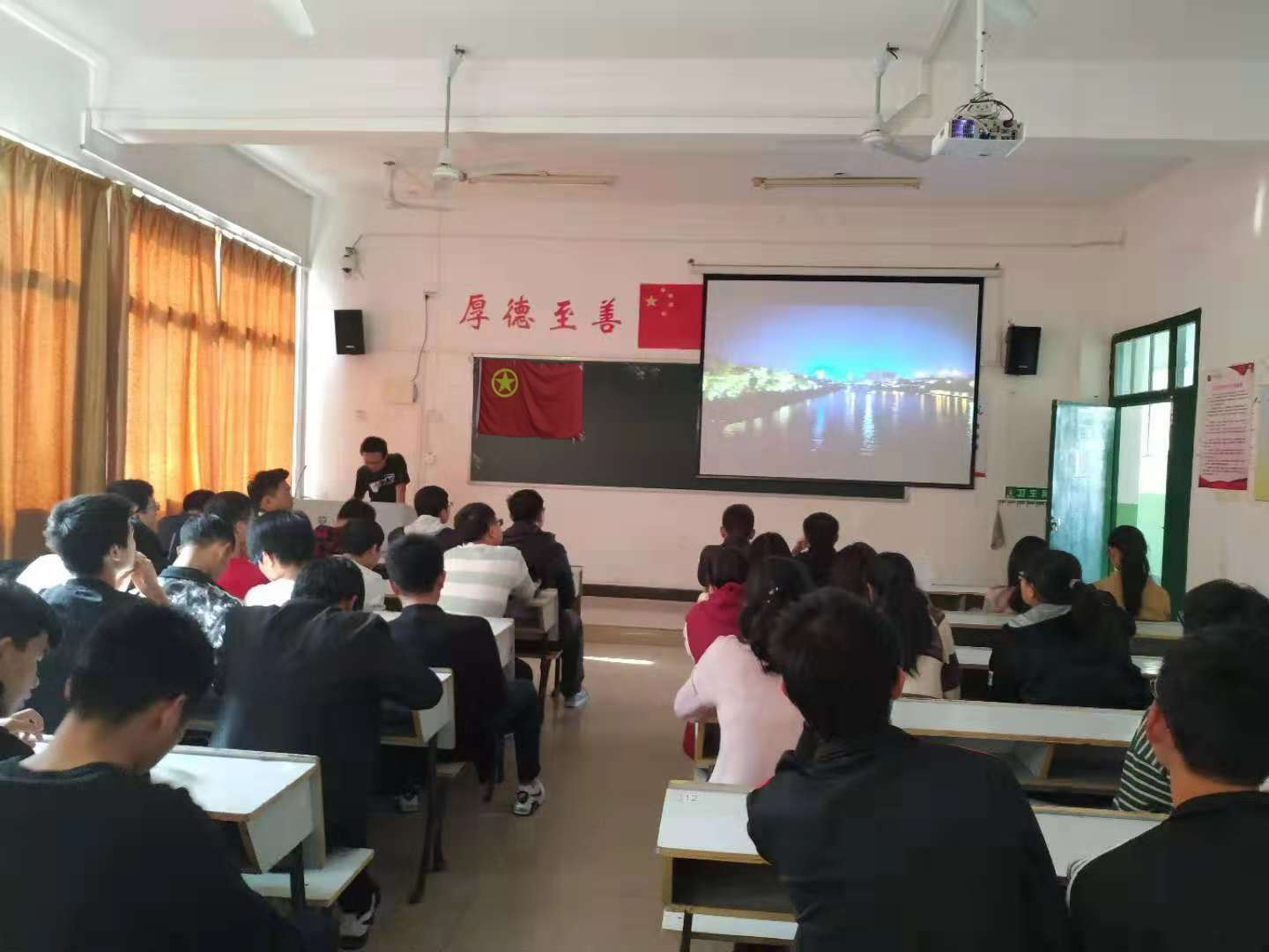 为激发出同学们的爱国主义情感,了解家乡的巨变,18电子信息工程二班在2018年11月25日下午一点于英华楼3513教室举行最美家乡评比活动。活动由徐忠浩同学主持。