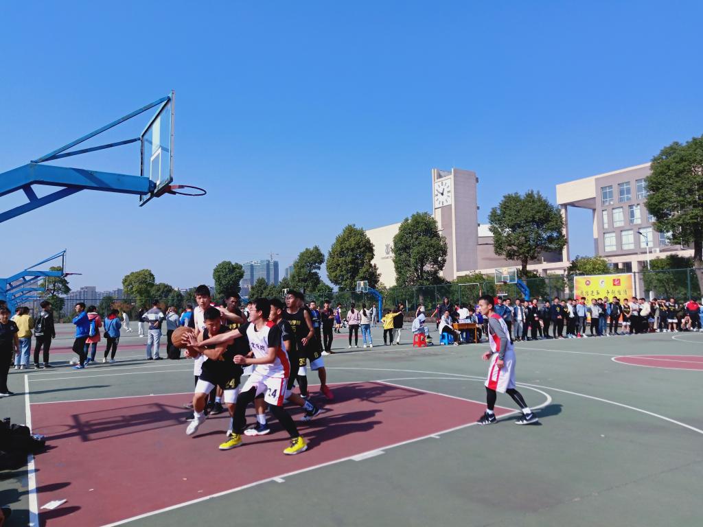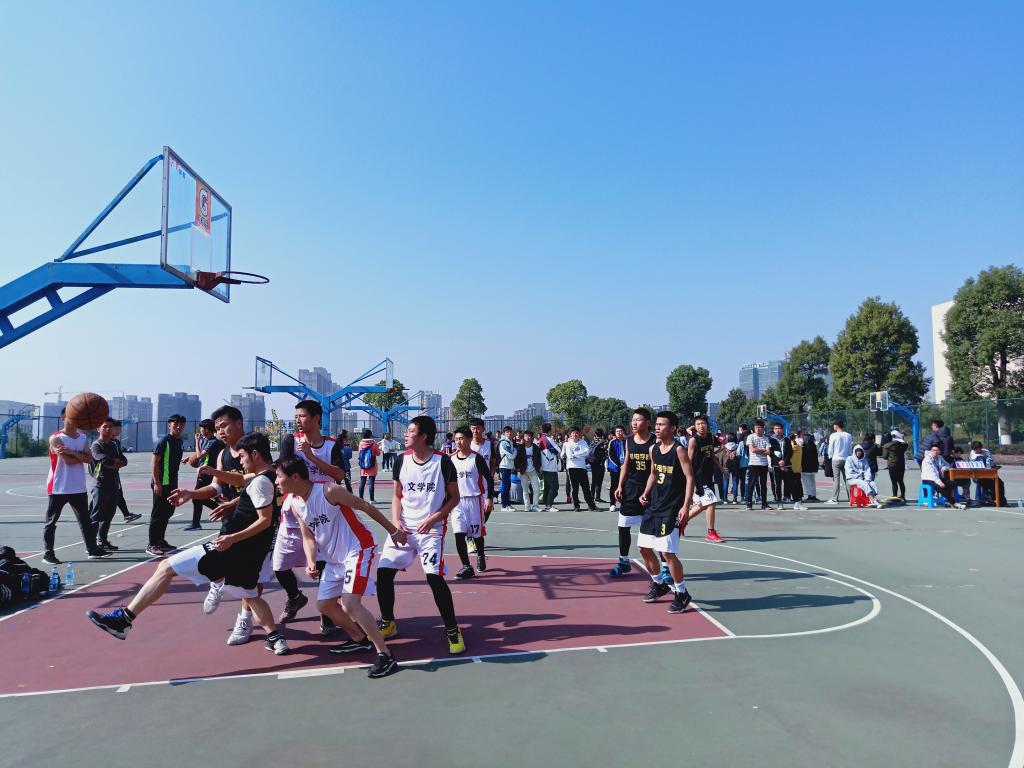 哨声响起后不久,机电学院与文学院2比2打平。随后机电学院一个帅气的假动作,潇洒的三步上篮逐渐把比分拉大,文学院也不甘落后,几个精准的三分球赢得了现场的一片喝彩声。篮球场上的气氛活跃,队员们在球场上尽情的挥洒着汗水,默契的传球、完美的配合一次又一次的让比赛沸腾。场上队员奋力奔跑,场外的观众也兴趣盎然地为双方队员加油喝彩!最终机电学院以33比14优胜于文学院。