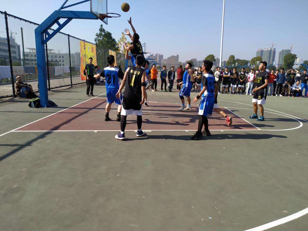 2018年11月29日中午12时20分,机电学院于大篮球场开展第四场积分赛,此次比赛,机电学院对战材化学院。机电学院学生代表、材化学院学生代表共同观看。