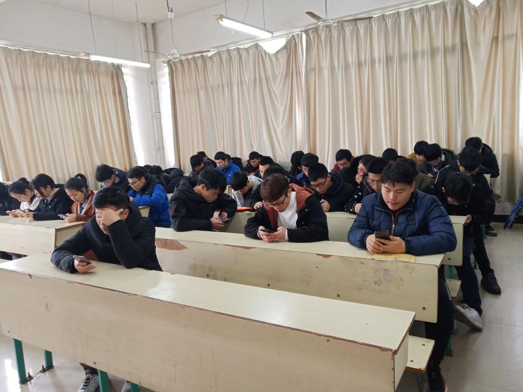 为深入学习贯彻党的十九大精神,切实将广大师生的思想认识和行动统一到党的十九大精神上来,2018年12月12日中午,机电学院组织学生于鼎新楼各教室进行十九大网络知识竞赛答题。16、17级各班学生踊跃参与。