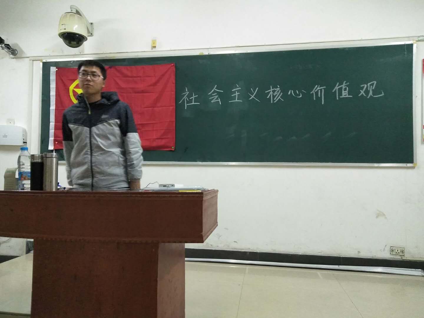 到底大学生该如何践行社会主义核心价值观?开始,班长上讲台为我们讲述到底大学生该如何践行社会主义核心价值观,并向大家点醒富强,民主,文明,和谐,自由,平等,公正,法治,爱国,敬业,诚信,友善这24个重要核心。接着,每一位同学轮流上台进行背诵,每个人都能够整齐流利地背诵下来。最后,同学们踊跃上台讲述社会主义核心价值观的意义,大家根据自己所学的内容和自己的观点一一阐述了自己所理解的社会主义核心价值观。
