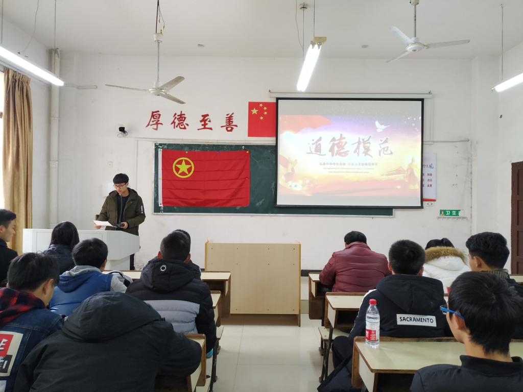 本次活动以“积善筑德,从身边做起”为主题,围绕“诵经典、评模范、谈感想、鞠躬礼、送吉祥”等环节展开。全体起立齐唱《学习雷锋好榜样》,朴素温暖的歌词迅速打开了在场观众的心扉。接着大家跟着屏幕一起观看感动中国人物支月英的故事短片,她从“支姐姐”到“支妈妈”的故事打动了在座所有人。在“评模范”环节中,18级学生凌熊健、朱麟、张海明等七人被评为学生道德模范。最后王立平副书记做总结性发言,他希望广大青年学生自觉增强奋斗精神,积极践行社会主义核心价值观,鼓励学生们在推动实现中国梦的伟大进程中成就个人梦想。