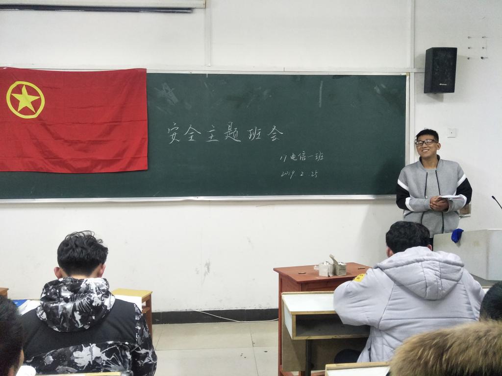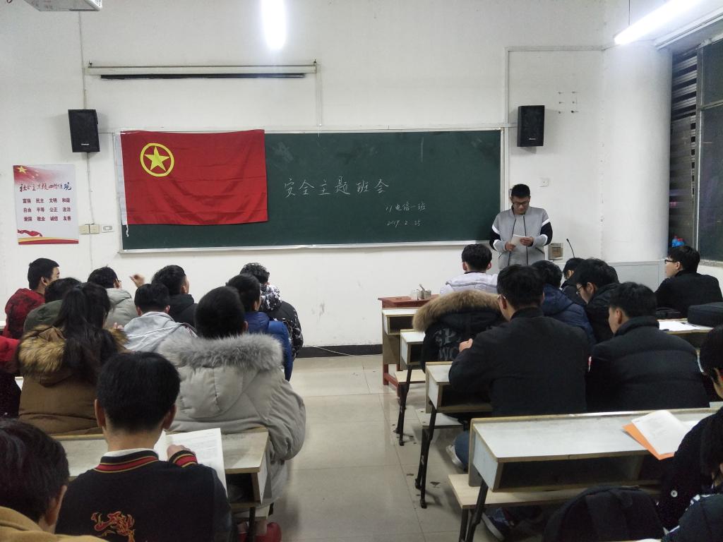 2019年2月27日晚上七点,机电学院17电信一班在鼎新楼2318召开了关于安全的主题班会。