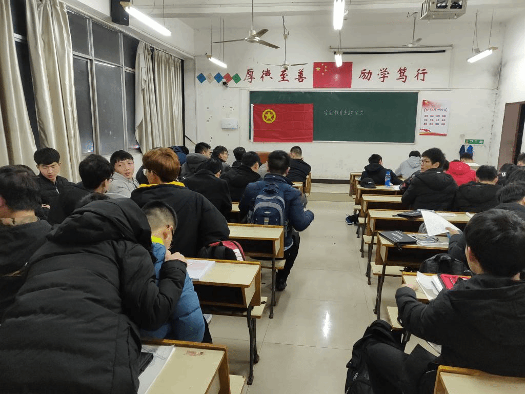 2019年2月27日,18机电班在鼎新楼2316教室开展了“安全知识主题班会”。班会就同学们在学校的人身安全和财产安全做出了解释和要求。