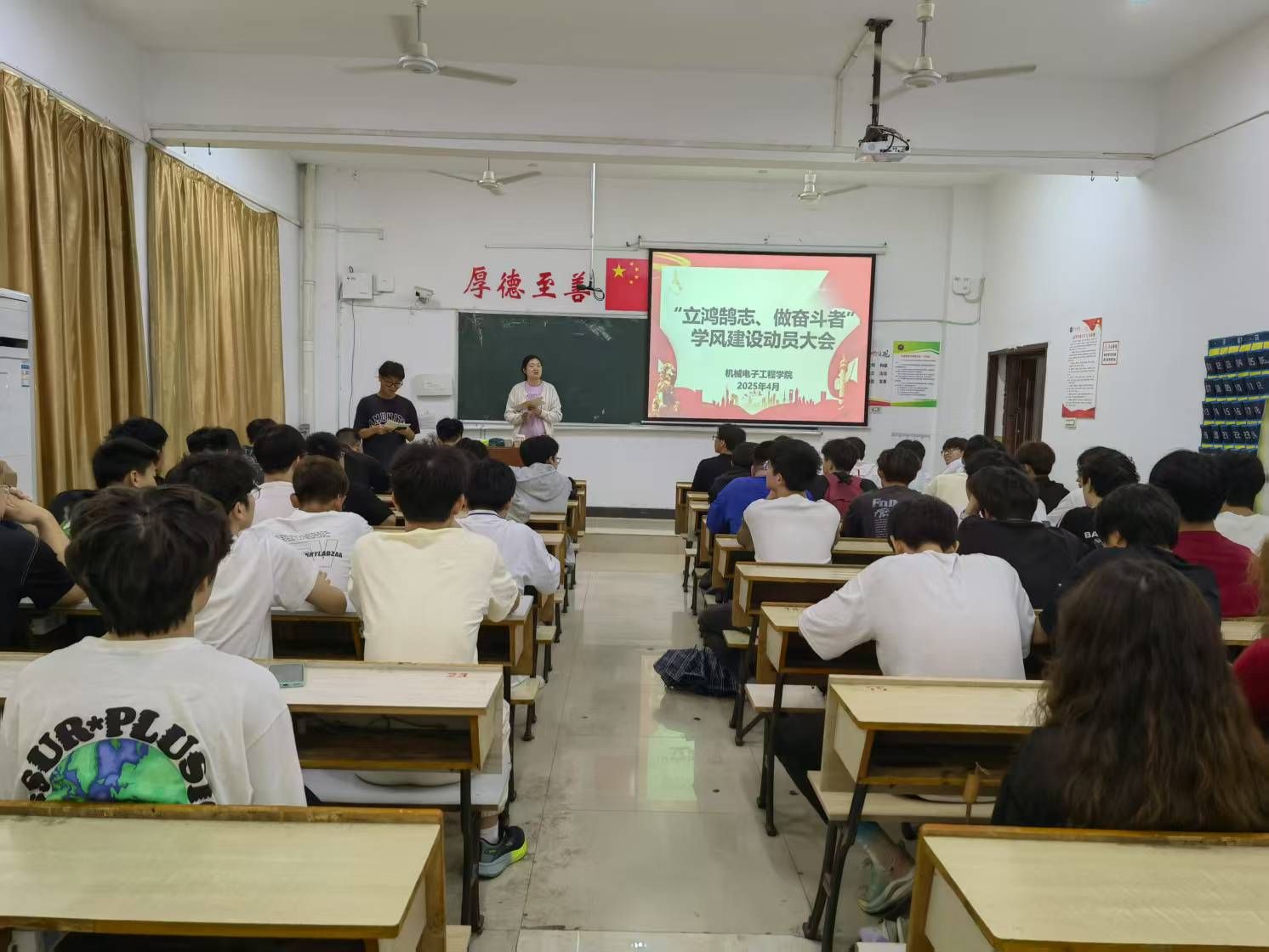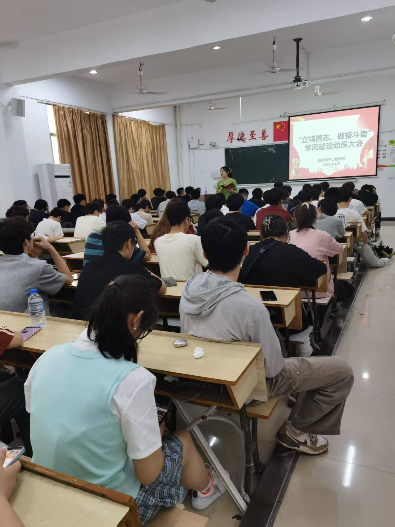 学院团委书记罗钦艳老师详细分析了当前学院学风建设的总体情况、取得的成效及存在的不足,并从“明确学习目标、端正学习态度、遵守学习纪律、优化学习方法、强化学术诚信、投身创新实践”等六个方面,对全院学生提出了具体要求与殷切期望。她指出,机电学子应以服务制造强国战略为己任,珍惜时光,打牢基础,追求卓越,努力成长为具备扎实理论基础、突出工程实践能力和强烈创新意识的高素质人才。