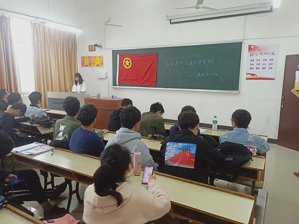 2019年4月11日,18机设2班在英华楼3612这个温暖的教室里举办了“应对压力,逆风飞翔”主题活动,活动由宋丽敏同学主持。开展此次活动旨在让同学们能够从容应对压力,学会在逆风中飞翔。