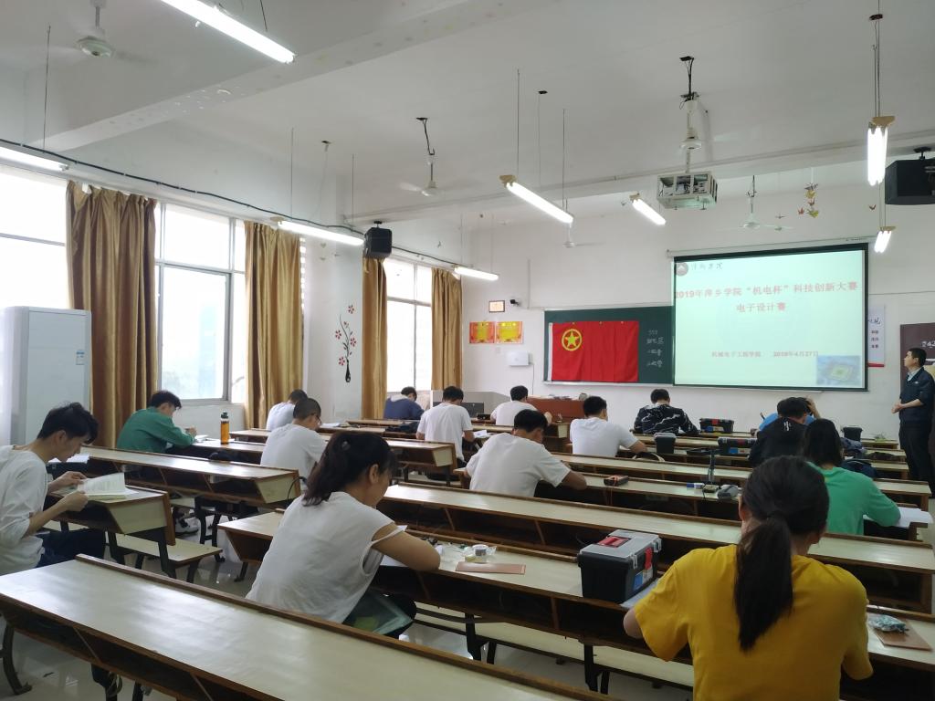 为培养学生科技创新能力,加强学生动手能力的培养和工程实践的训练,提高学生针对实际问题进行电子线路设计、电子装置制作的综合能力。2019年4月27日上午永利集团88304官网集团于鼎新楼2424举行电子设计竞赛,此次比赛共20名学生参加,比赛开始前由胡子健老师讲解比赛规则及注意事项,八点半比赛正式开始。