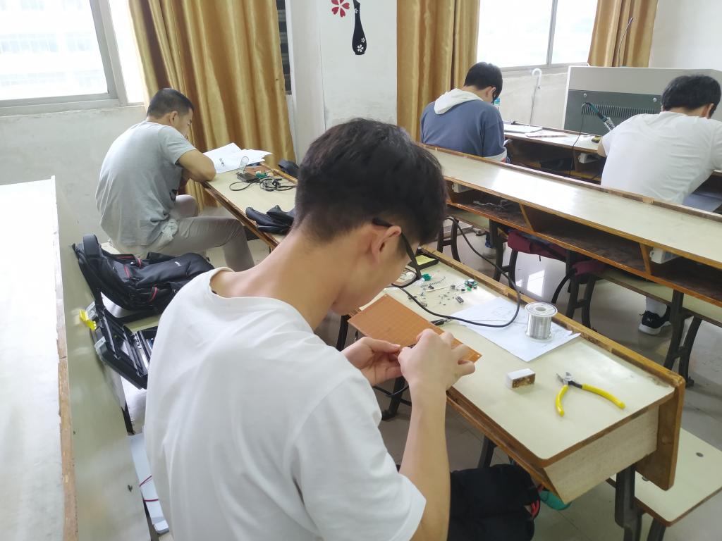 本次比赛的题目为出入口检测装置设计,竞赛开始后,参赛选手认真查看器件清单与实物,看着试题要求开始沉浸思考如何设计。竞赛时间长达七个半小时。赛场上,参赛者们翻阅自带的资料,在画图纸上画电路图,认真思考,沉着应战,比赛紧张而有序的进行,每名参赛选手都专心致志于自己的工作,争取在规定时间内完成焊接任务。下午四点,竞赛准时结束,胡子健老师指出竞赛过程成中存在的不足,望同学们好好总结,以最好的状态参加省级比赛。