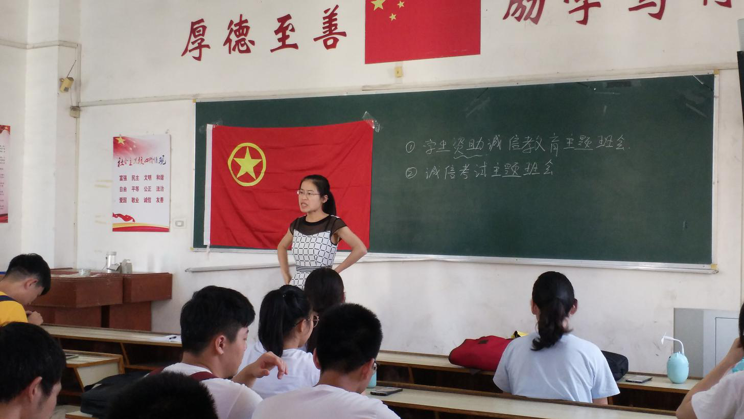 为进一步端正同学们的考试态度,规范考试行为,树立良好的考风、考纪,2019年6月19日晚,17电信二班在鼎新楼2614教室召开了“诚信考试、诚实应考”主题班会。