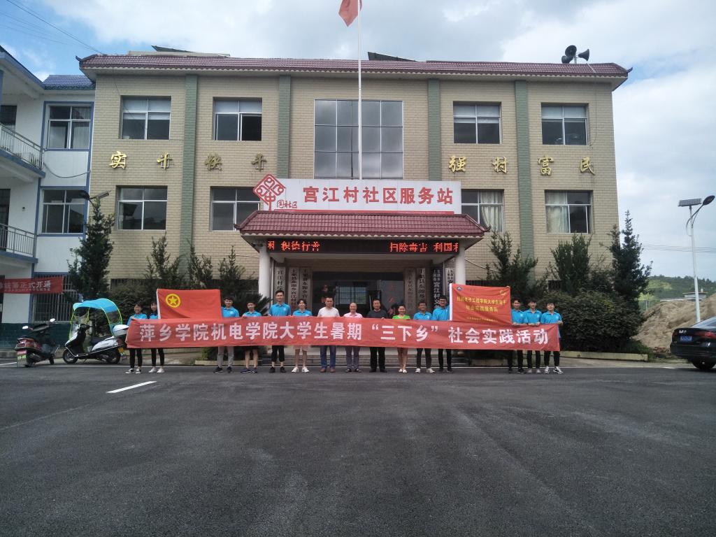 为深入学习习近平新时代中国特色社会主义思想,学习贯彻党的十九大和十九届二中、三中全会精神,引领教育广大青年学生增强“四个意识”、坚定“四个自信”、做到“两个维护”,在社会实践活动中受教育、长才干、做贡献,勇做担当民族复兴大任的时代新人。根据团组织的要求,永利集团88304官网集团机电学院特组建一支暑期社会实践团队到萍乡市上栗县东源乡宫江村进行社会实践。