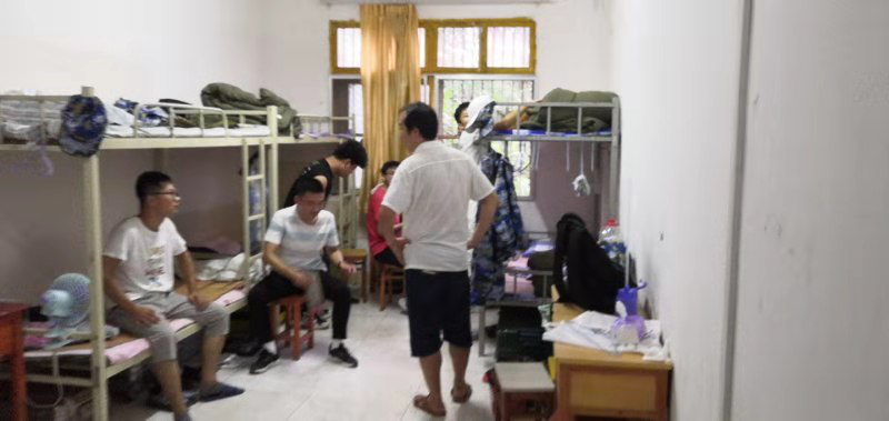 机电学院新生男生主要分布在十五栋宿舍。每到一间宿舍,张老师都会与新生亲切交谈,详细询问新生们的适应情况和身体状况,鼓励新生们积极适应新环境,照顾好自己的身体,提高人身与财产安全防范意识。