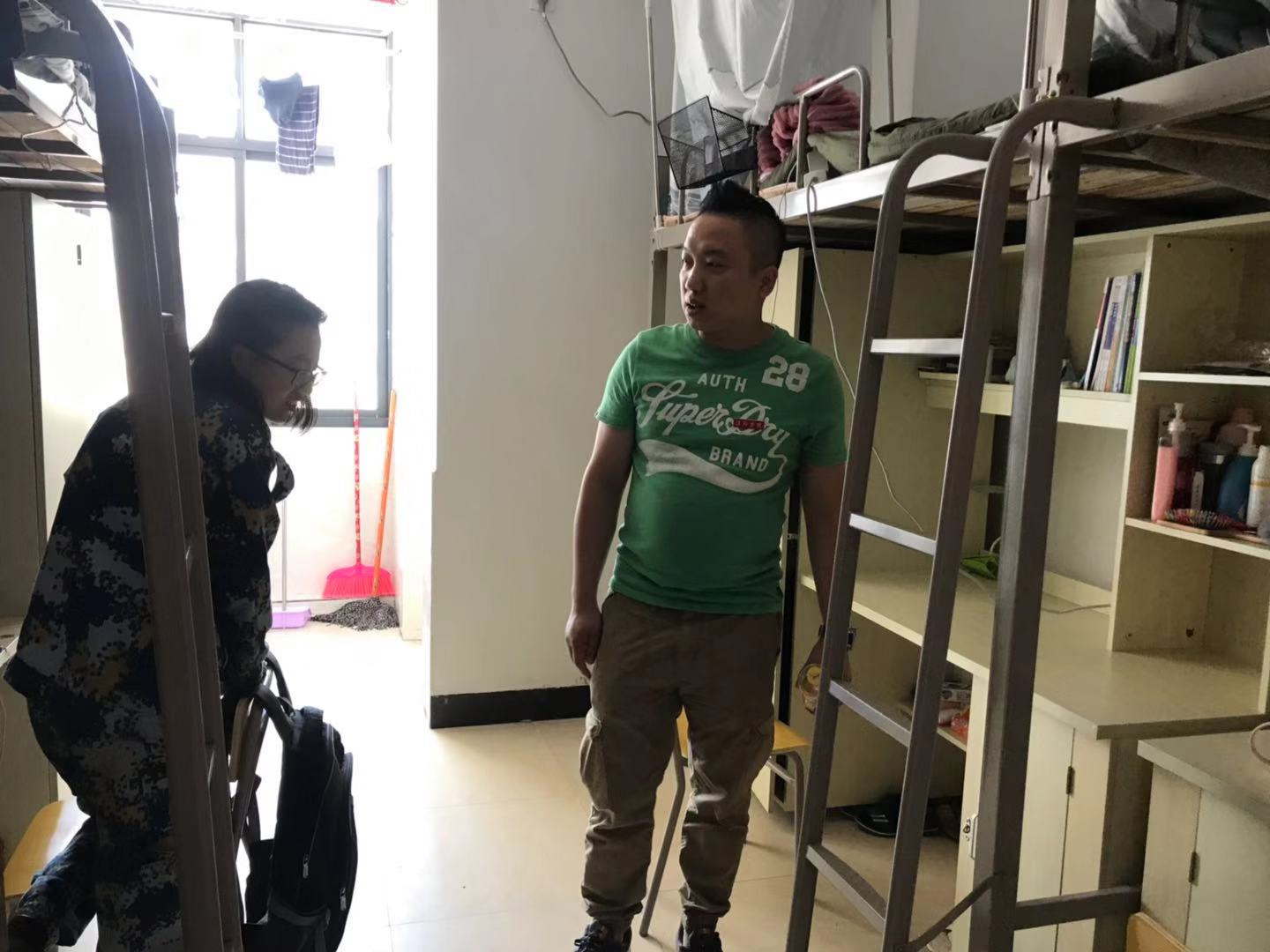 老师们走进新生的宿舍时,新生们都忙着打扫自己的寝室,规放物品,整理床铺等。辅导员检查了寝室中的物品是否有损坏,关切的问起了学生们的适应情况。老师们在走访过程中不仅察看和询问了学生们的假期经历、初入大学的心情等多方面情况,还特别要求新同学们要以阳光健康积极的心态迎接大学生活,要和室友、班级同学友爱等。还提醒同学们要实时关注军训后的一切教学活动安排,以良好的纪律观念参加,并且嘱咐大家有问题要及时向相关的老师和班助反映、沟通,以便及时获得帮助、解决问题。