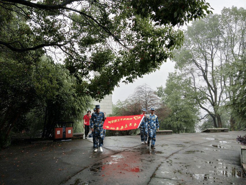 同学们怀着对烈士崇高的敬意徒步来到了安源纪念馆,在和风细雨中,井然有序的进入烈士陵园,气氛严肃而庄重。在革命烈士纪念碑前,全体人员一字排开,统一脱帽向为革命献身的先烈们默哀。随后全体人员在纪念碑前,面对党旗举行了重温入党誓词活动,庄严宣誓,对党忠诚,为共产主义事业奋斗终生。