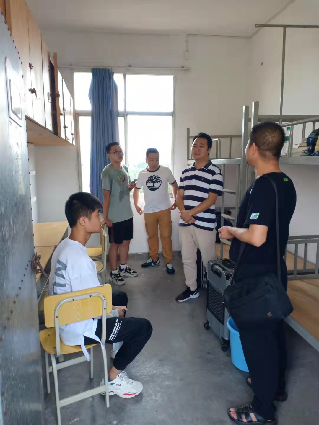 师生见面欢聚一堂。老师们询问了学生们的入学情况,是否有什么困难,嘱咐同学,学会自我管理,规划好自己的人生。对学生寝室的安全卫生工作进行了全面检查还给同学们讲解了预防传新冠病毒的健康常识强调了学生寝室防盗防骗防火等安全问题。强调了在生活上要特别注意个人卫生和寝室卫生养成良好的生活习惯。新同学们也纷纷表示一定会以积极奋进的态度、昂扬向上的风貌,迎接自己崭新的大学生活