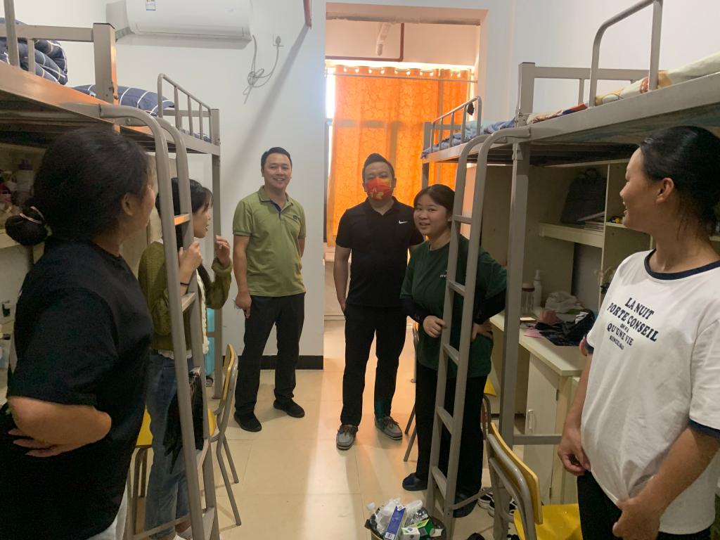 2022年9月12日上午,永利集团88304官网集团党委书记王斌、院长李涛涛、副书记童乐、副院长刘耀和新生辅导员深入2022级新生宿舍,对新生表示慰问和关心。