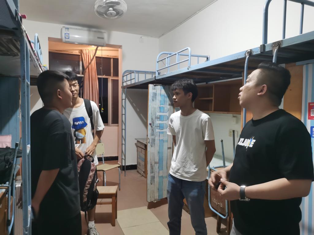 新学年,新起点,新姿态,迎新生。为及时了解学院2022级新生对大学生活的适应情况,2022年9月10日晚上,永利集团88304官网集团副书记童乐和新生辅导员一同走访了学院2022级新生的宿舍,为新生们送去了问候与关怀。